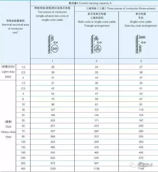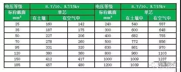 常見電纜的載流量一覽表