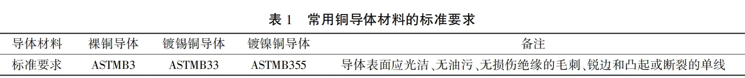 但是大部分企業(yè)仍然把銅作為導(dǎo)體層的主要材料,首先銅的電阻率較低,其次銅大部分性能都優(yōu)于同級別的鋁,如載流量大、電壓損失低、能耗低和可靠性強(qiáng)等。目前導(dǎo)體選材一般采用國標(biāo)6類軟導(dǎo)體(單根銅絲伸長率必須大于25%,單絲直徑小于0.30)去保證銅單絲柔軟性、韌性強(qiáng)。表1列出了常用的銅導(dǎo)體材料所需要滿足的標(biāo)準(zhǔn)。